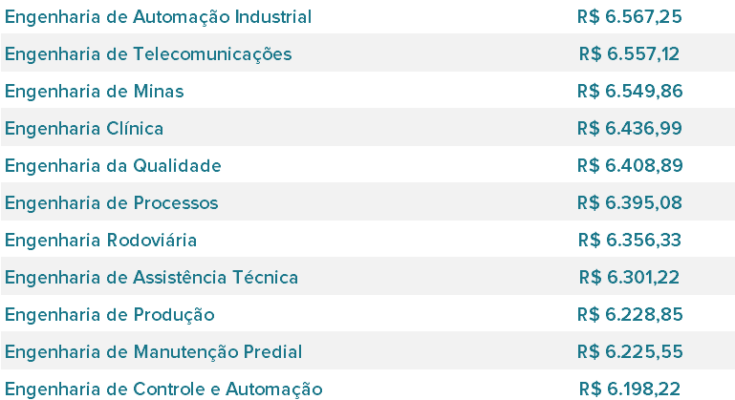 Outras áreas de Engenharia com bons salários incluem Engenharia Elétrica, Engenharia de Software, Engenharia Mecânica, Engenharia de Produção e Engenharia Nuclear. Todas essas áreas exigem pelo menos uma licenciatura em Engenharia, além de anos de experiência no campo.